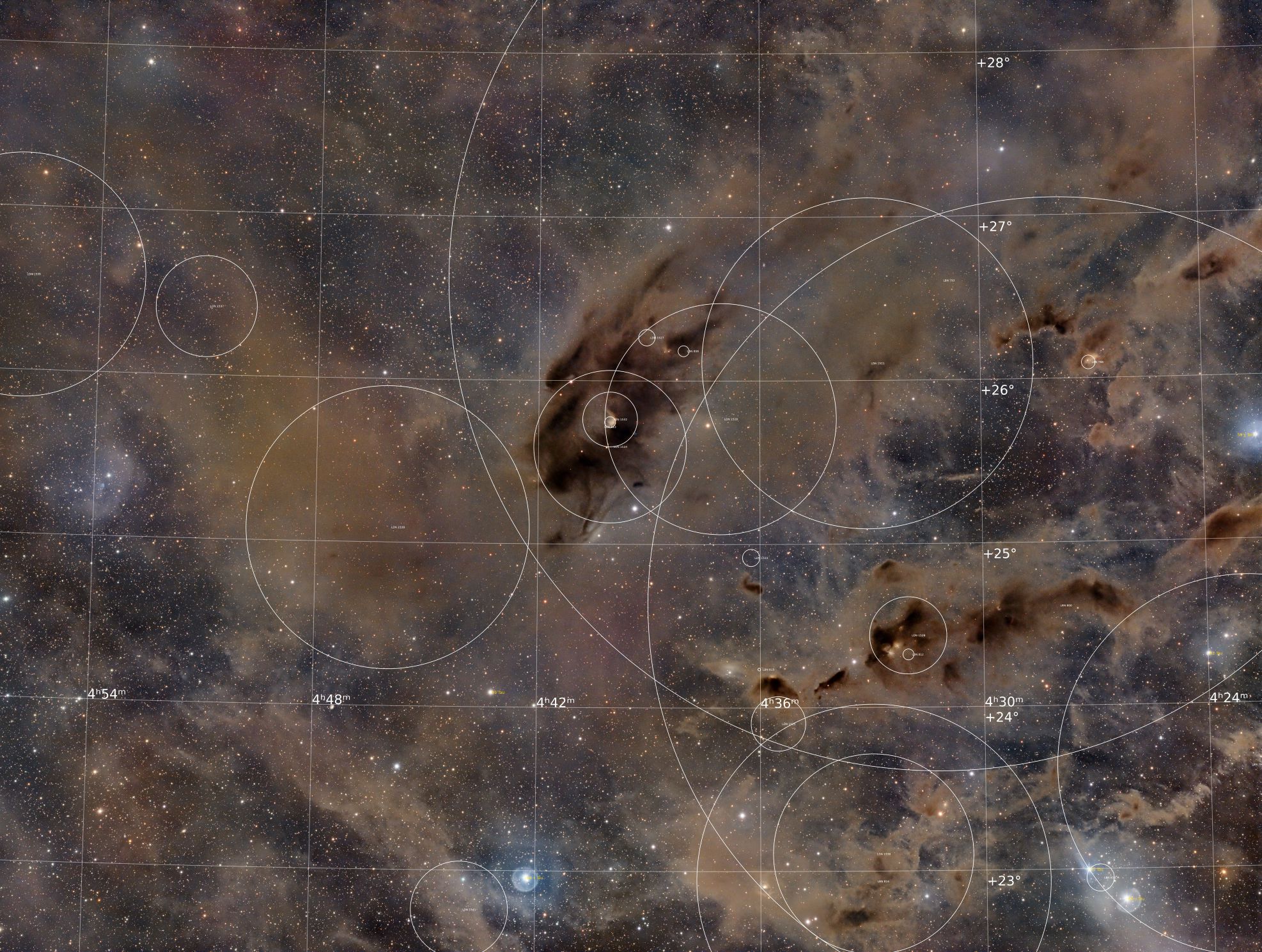 Barnard 22 gelegen im Sternbild Stier - ein paar Grad östlich der Pleyaden ist eine Welt der Staubwolken und in weiterer Folge auch für die Entstehung neuer Sterne. Zur Objektbeschreibung