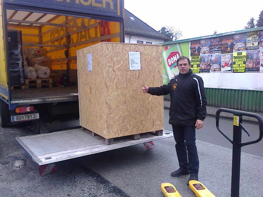 Am nächsten Tag am Morgen (vor 9 Uhr geht eh nix) wurde die Kiste mit dem teuren Inhalt von Ricardo aus dem Stadtkern gefahren und zum organisierten