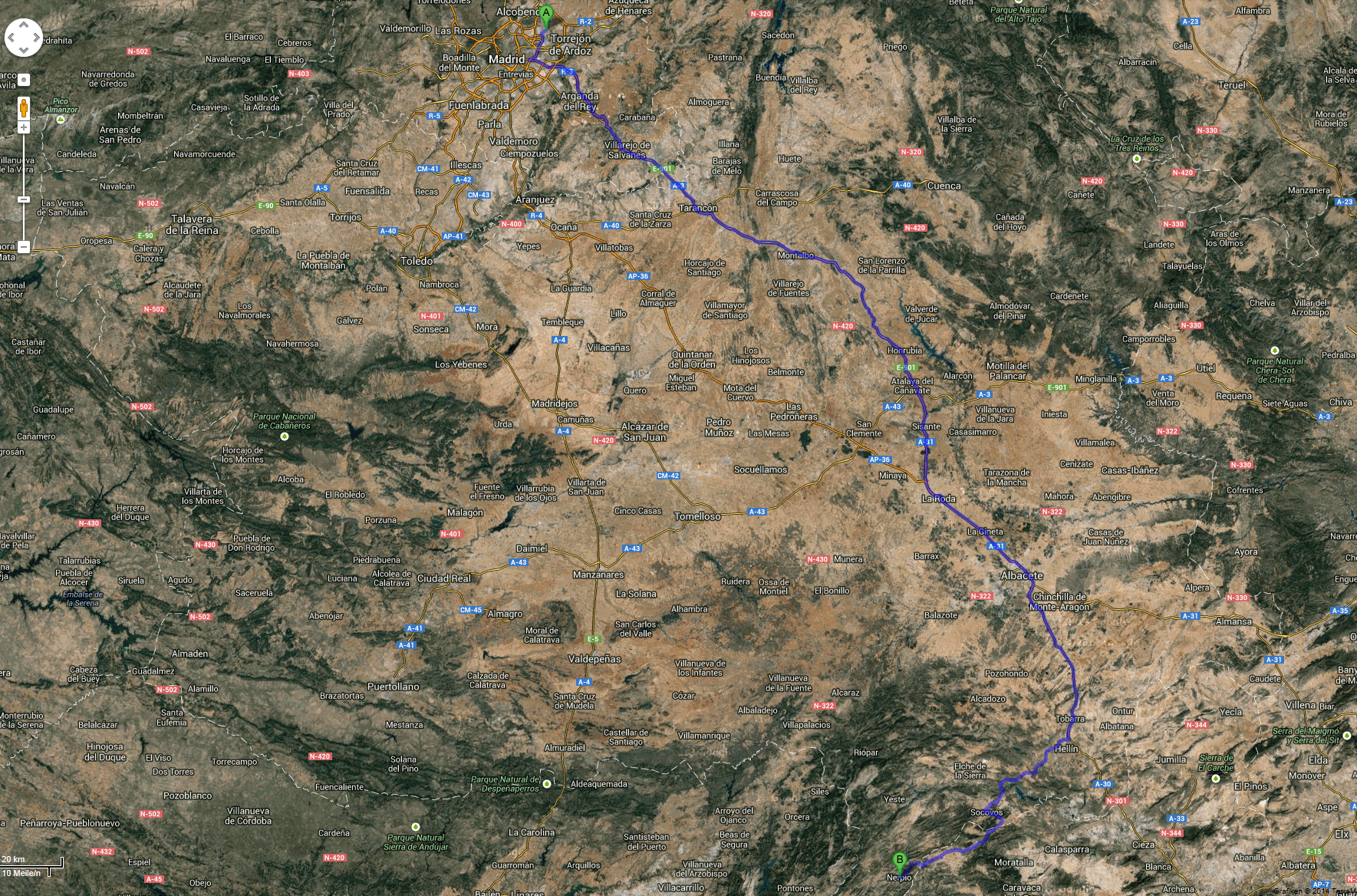 Hier eine Übersicht der Strecke aus Google Maps - 400 km von Madrid nach Nerpio