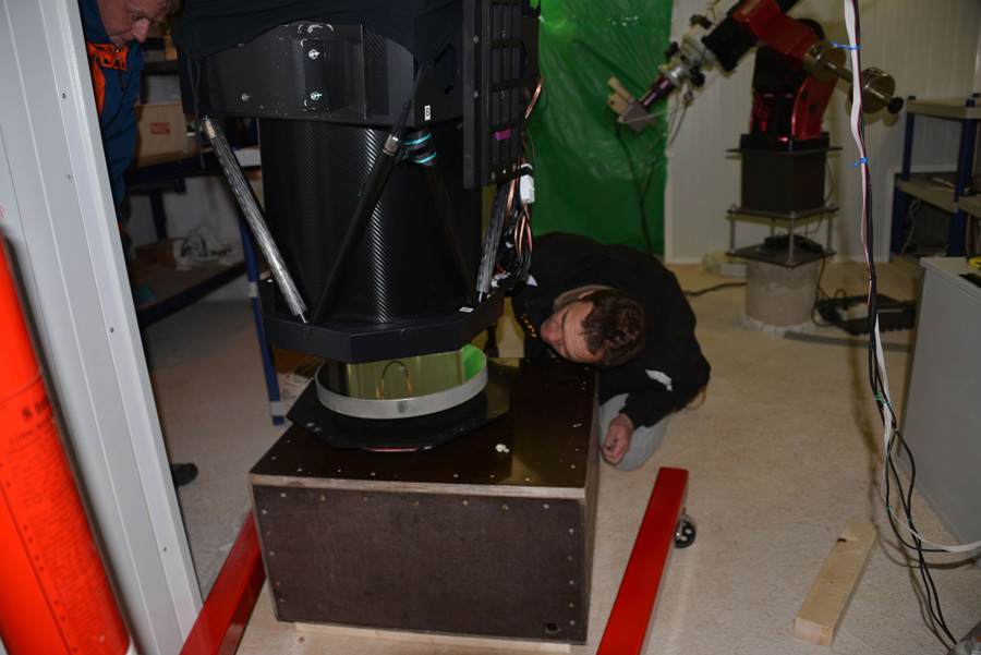 Langsam wird alles voll - das Teleskop bekommt einen Staubschutz - man weiß nie.