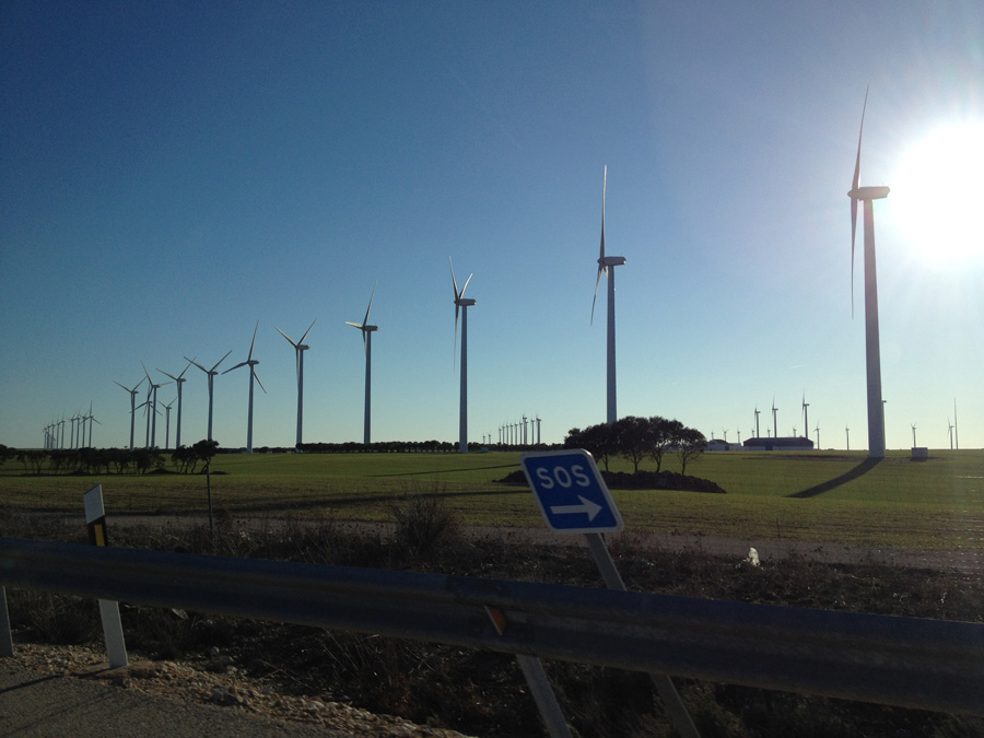 Auf sehr guten Autobahnen gehts Richtung Süden - vorbei an vielen vielen vielen Windrädern und Solarkraftwerken